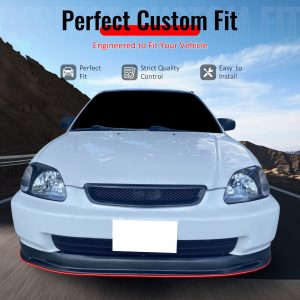Fits 96-98 Honda Civic TR Style Front Bumper Lip Spoiler Kit Unpainted Black PU