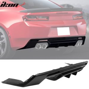 Fits 16-24 Chevy Camaro Rear Bumper Lip Diffuser Quad Exhaust PP Matte Black 3PC