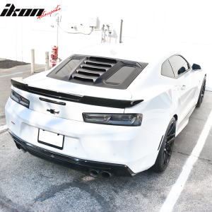 Fits 16-24 Chevy Camaro V2 Rear Window Louver Sun Shade Cover Vent Gloss Black