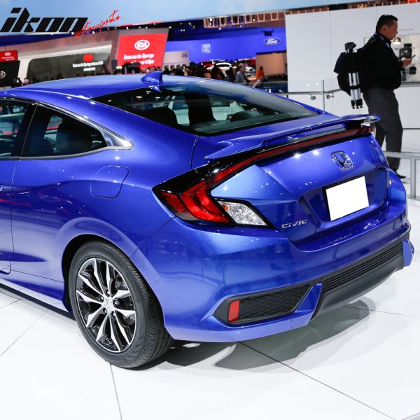 • OE/OEM Part Number: 2016 2017 2018 2019 2020 Honda Civic, EX-T EX-L LX-P LX EX Si Touring Sport Plus Coupe Coupe 2-Door 2Dr, Unpainted Black ABS Plastic, Rear Trunk Spoiler Decklid Wing Added on Body Kit, Easy Installation, No Drilling Required