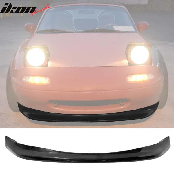 Document PRODUCT DISPLAY PRODUCT DESCRIPTION FEATURES & BENEFITS OTHER OPTIONS CONTACT US Key Features & Benefits 1. Custom & Direct Fit: This item is the whole set of 100% brand new custom fit front bumper lip spoiler, precisely engineered for an exact fit to your vehicle. Please confirm the compatibility before purchasing the front bumper body kit. 2. Premium & Reliable Material: The new designed front bumper lip chin spoiler is made of updated durable and sturdy materials to protect your car from scrapes caused by curbs or collision. The front lip splitter is constructed and tested by strict quality control standards with high impact resistance, heat resistance, corrosion resistance. 3. Effective Protection & Exquisite Appearance: Daily driving can provide anti-collision protective experience to your original air dam chin front bumper lip, protect from scrapes from driveways, speed bumps and curbs, alleviate the damage. In addition, it will dramatically improve the sporty and aggressive appearance for your car. 4. Aerodynamic Performance: The automotive vehicle front bumper spoiler improves aerodynamic characteristics by enhancing the transition between the high speed airflow under the vehicle and the free airflow in the surrounding, thus ensuring better performance and fuel economy. 5. Easy Installation & Available Painting: The car front lip spoiler splitter is designed for easy installation and comes ready to prep and paint.. Of course, professional paint job and installation is highly recommended. If you are not sure whether your car is suitable or how to install it, please contact us timely, we will help you solve the problem. Specifications Fitment Fits 1990-1997 Mazda Miata Coupe/Convertibles Color Unpainted Style GV Type2 Style Material PU – Polyurethane Package Includes 1x Front Bumper Lip Installation Instructions Not Included Note: Please test fit items prior to any painting services, any products that are painted void warranty. Descriptions The Front Bumper Lip Spoiler Splitter is not just a piece of decoration for your car. It serves quite a few additional functions other than adding to the car's aggressive and personalized appearance. It can protect your vehicle from minor damage and preserve its paint. The bumper lip splitter can provide better aerodynamic performance, reduce airflow, and then decrease air drag, and in crease fuel efficiency. It can also increase the stability of the vehicle while driving at an extremely high speed. In conclusion, the front bumper lip air dam chin is a helpful accessory to reduce the airflow and protect the car from damage, and also a stylish and fancy decoration. We provide a wide range of front bumper lip, spoiler and splitter kits that combine high quality and unique, stylish designs. Now, it's time to find one that fits your vehicle best. Welcome to IKON MOTORSPORTS Store. Custom Designed For Perfect Fit IKON MOTORSPORTS each front bumper lip spoiler is measured to direct fit your car model perfectly. The Detailed Functions Of The Bumper Lip CAR BUMPER PROTECTION LIP can help you solve these problems. Protect the Bumper From Damage A bumper lip covers the bottom edge of the bumper on the vehicle, protecting it from potential scrapes and nicks on a speed bump, parking block, curb, etc. It's also an excellent helper to preserve the paint of the car. Reduce Airflow Under the Vehicle When driving, there's air flowing under the vehicle. It will slow the car down and cause a loss in speed. The bumper lip can improve your car's aerodynamics and reduce airflow, and then decrease air drag, and increase fuel efficiency. To some extent, this can also help increase downforce, which improves handling. Enhance the Vehicle's Overall Look Some people install a front bumper lip just to make the car lower in appearance. The car with a lowered look is more stylish and attractive. So, it's also a great addition to improve the vehicle's aesthetics. Before VS After Installation Installing a front bumper lip spoiler splitter, it serves quite a few additional functions other than adding to the car's looks. It can protect your vehicle from minor damage and even aid its aerodynamics. Available Front Bumper Lip Universal Front Bumper Lip 1PCS Front Bumper Lip 2PCS Front Bumper Lip 3PCS Front Bumper Lip 4PCS Front Bumper Lip Add to Cart Add to Cart Add to Cart Add to Cart Add to Cart Our front bumper lips have the following options Click and turn to the related items Available Color Unpainted Matte Black Gloss Black Carbon Fiber Print OEM Painted Color Available Material CF – Carbon Fiber Matte Carbon Fiber PP – Polypropylene PU – Polyurethane ABS – Acrylonitrile Butadiene Styrene Available Style OE Style Mugen Style Type R Style AC-S/A Style Performance Style Domestic 48 States Free Shipping HI, AK, PR, GU, VI, APO, FPO 66 Canada 90 International 132 CA Sales Tax 10.75% Shipping Carrie UPS Ground, FedEx and USPS Priority, Pilot (Truck) for Large Package All Packages Will Be Shipped Out From Our CA Or GA Warehouse. We Will Adjust The Shipping Location On The Basis Of The Item Current Stock And Your Order Delivery Address. Please Feel Free To Place Your Order! Payment Methods Warranty 30 Days Money Back It is our goal to provide 100% satisfaction and peace of mind to our customers. If you are not satisfied with the products for any reason within 30 days of receiving the item. We will charge 25% restocking fees on returned items that have been installed, damaged, painted, cut and not authorized, etc. Please contact us to inquire how to waive the 25% restocking fees. (Items must be not opened in their original package. Any mark of installation, mounting, cutting, scratch or using will not be allowed.) Shipping and Handling are not refundable. 30 Days Return Seller Pay Shipping For Domestic Buyer. 30 Days Limited Warranty. Warranty is for exchange only. All products come with a 30 days limited warranty against manufacturers defects including bulbs, led o