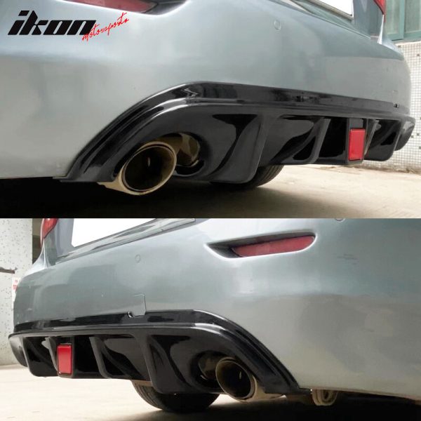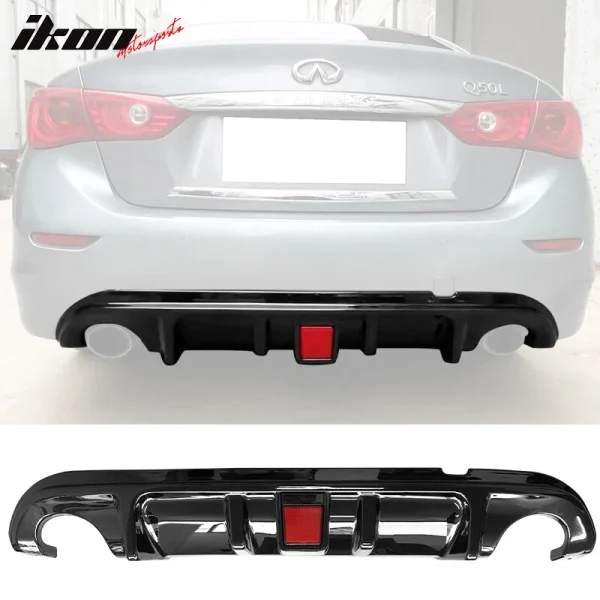 Fits 14-17 Infiniti Q50 Gloss Black LED Brake Light PP Rear Bumper Lip Diffuser