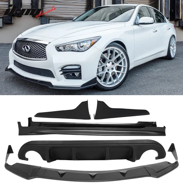 Fits 14-17 Infiniti Q50 Q50S Front Lip + Side Skirts + Rear Apron +Rear Diffuser