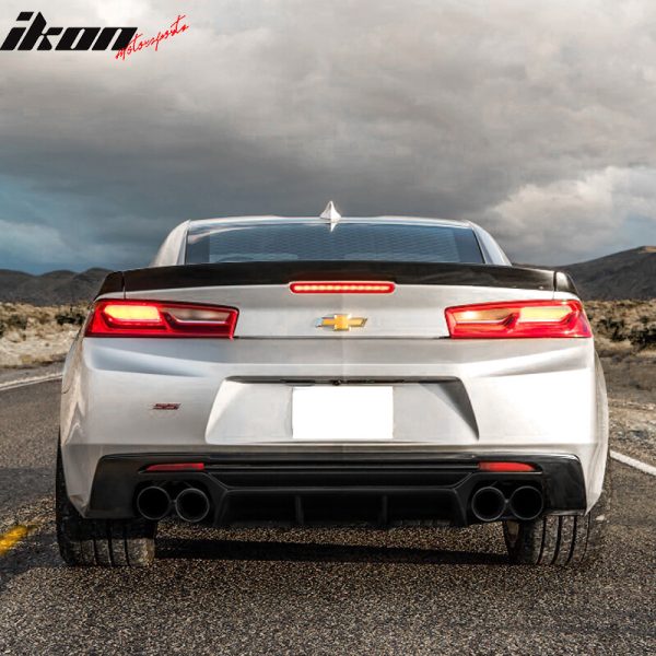 Fits 16-24 Chevy Camaro Rear Bumper Lip Diffuser Quad Exhaust PP Gloss Black 3PC