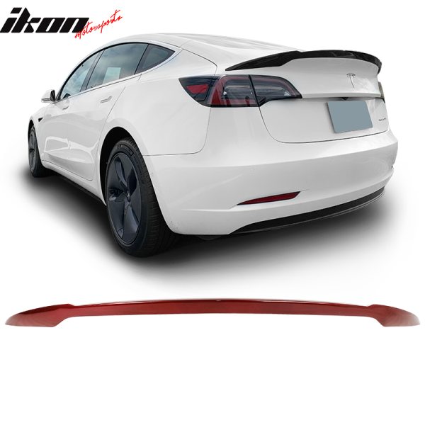 Fits 17-23 Tesla Model 3 IKON V Style Rear Trunk Spoiler Wing Painted #PPMR Red