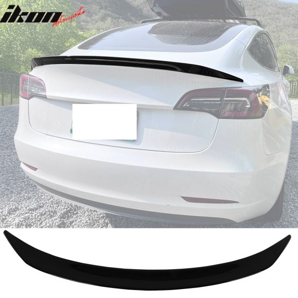 Fits 17-23 Tesla Model 3 V Style Gloss Black Rear Trunk Spoiler Tail Wing Lip