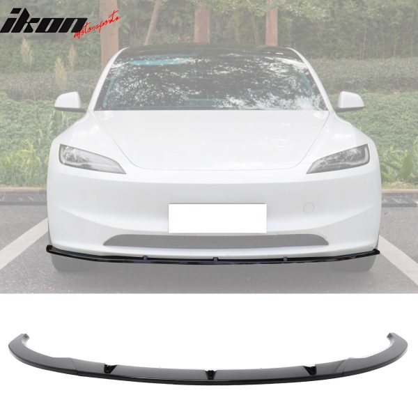 Fits 24-25 Tesla Model 3 Gloss Black PP Front Bumper Lip 3PCS – IKON V4 Style