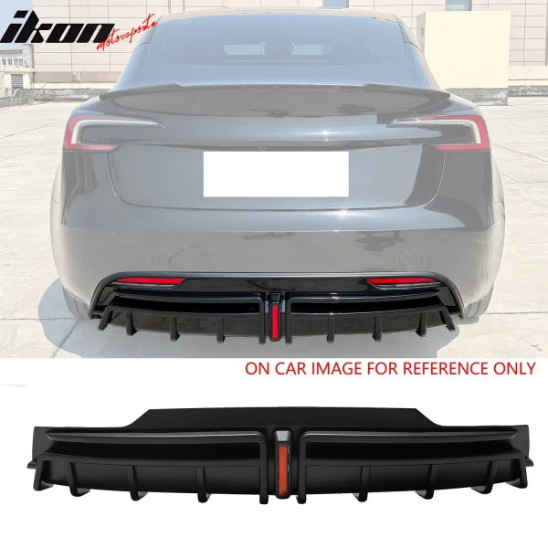 Fits 24-25 Tesla Model 3 Highland Rear Bumper Diffuser Matte Black Lip LED Apron