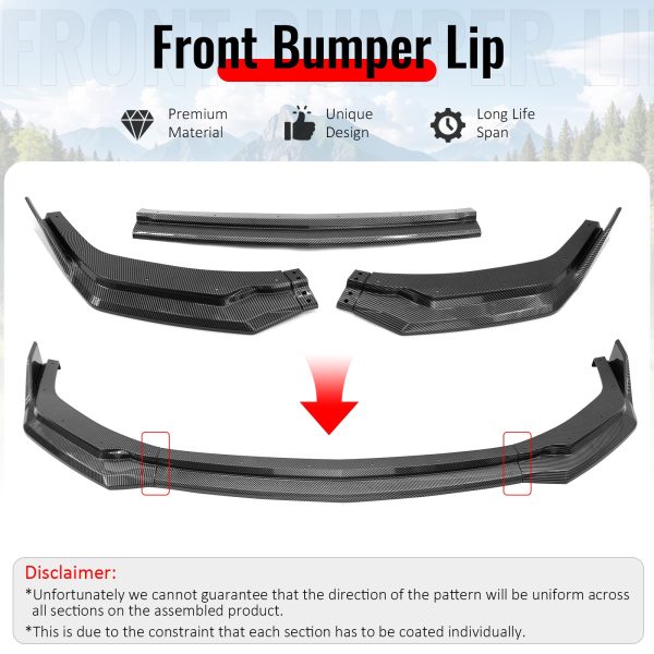 Document PRODUCT DISPLAY PRODUCT DESCRIPTION FEATURES & BENEFITS OTHER OPTIONS CONTACT US Key Features & Benefits 1. Custom & Direct Fit: This item is the whole set of 100% brand new custom fit front bumper lip spoiler, precisely engineered for an exact fit to your vehicle. Please confirm the compatibility before purchasing the front bumper body kit. 2. Premium & Reliable Material: The new designed front bumper lip chin spoiler is made of updated durable and sturdy materials to protect your car from scrapes caused by curbs or collision. The front lip splitter is constructed and tested by strict quality control standards with high impact resistance, heat resistance, corrosion resistance. 3. Effective Protection & Exquisite Appearance: Daily driving can provide anti-collision protective experience to your original air dam chin front bumper lip, protect from scrapes from driveways, speed bumps and curbs, alleviate the damage. In addition, it will dramatically improve the sporty and aggressive appearance for your car. 4. Aerodynamic Performance: The automotive vehicle front bumper spoiler improves aerodynamic characteristics by enhancing the transition between the high speed airflow under the vehicle and the free airflow in the surrounding, thus ensuring better performance and fuel economy. 5. Easy Installation & Available Painting: The car front lip spoiler splitter is designed for easy installation and comes ready to prep and paint.. Of course, professional paint job and installation is highly recommended. If you are not sure whether your car is suitable or how to install it, please contact us timely, we will help you solve the problem. Specifications Fitment Fits 2024-2026 Ford Mustang EcoBoost/GT with Performance Front Lip; 2024-2026 Dark Horse Models Without Handling Package; Not Fits GTD Models Color Carbon Fiber Print Style IKON 3PC Style Material ABS Plastic Package Includes 1x Set of Front Bumper Lip (3PC) Installation Instructions Not Included Note: Please test fit items prior to any painting services, any products that are painted void warranty. Descriptions The Front Bumper Lip Spoiler Splitter is not just a piece of decoration for your car. It serves quite a few additional functions other than adding to the car's aggressive and personalized appearance. It can protect your vehicle from minor damage and preserve its paint. The bumper lip splitter can provide better aerodynamic performance, reduce airflow, and then decrease air drag, and in crease fuel efficiency. It can also increase the stability of the vehicle while driving at an extremely high speed. In conclusion, the front bumper lip air dam chin is a helpful accessory to reduce the airflow and protect the car from damage, and also a stylish and fancy decoration. We provide a wide range of front bumper lip, spoiler and splitter kits that combine high quality and unique, stylish designs. Now, it's time to find one that fits your vehicle best. Welcome to IKON MOTORSPORTS Store. Custom Designed For Perfect Fit IKON MOTORSPORTS each front bumper lip spoiler is measured to direct fit your car model perfectly. The Detailed Functions Of The Bumper Lip CAR BUMPER PROTECTION LIP can help you solve these problems. Protect the Bumper From Damage A bumper lip covers the bottom edge of the bumper on the vehicle, protecting it from potential scrapes and nicks on a speed bump, parking block, curb, etc. It's also an excellent helper to preserve the paint of the car. Reduce Airflow Under the Vehicle When driving, there's air flowing under the vehicle. It will slow the car down and cause a loss in speed. The bumper lip can improve your car's aerodynamics and reduce airflow, and then decrease air drag, and increase fuel efficiency. To some extent, this can also help increase downforce, which improves handling. Enhance the Vehicle's Overall Look Some people install a front bumper lip just to make the car lower in appearance. The car with a lowered look is more stylish and attractive. So, it's also a great addition to improve the vehicle's aesthetics. Before VS After Installation Installing a front bumper lip spoiler splitter, it serves quite a few additional functions other than adding to the car's looks. It can protect your vehicle from minor damage and even aid its aerodynamics. Available Front Bumper Lip Universal Front Bumper Lip 1PCS Front Bumper Lip 2PCS Front Bumper Lip 3PCS Front Bumper Lip 4PCS Front Bumper Lip Add to Cart Add to Cart Add to Cart Add to Cart Add to Cart Our front bumper lips have the following options Click and turn to the related items Available Color Unpainted Matte Black Gloss Black Carbon Fiber Print OEM Painted Color Available Material CF – Carbon Fiber Matte Carbon Fiber PP – Polypropylene PU – Polyurethane ABS – Acrylonitrile Butadiene Styrene Available Style OE Style Mugen Style Type R Style AC-S/A Style Performance Style Domestic 48 States Free Shipping HI, AK, PR, GU, VI, APO, FPO 95 Canada 95 International 150 CA Sales Tax 10.75% Shipping Carrie UPS Ground, FedEx and USPS Priority, Pilot (Truck) for Large Package All Packages Will Be Shipped Out From Our CA Or GA Warehouse. We Will Adjust The Shipping Location On The Basis Of The Item Current Stock And Your Order Delivery Address. Please Feel Free To Place Your Order! Payment Methods Warranty 30 Days Money Back It is our goal to provide 100% satisfaction and peace of mind to our customers. If you are not satisfied with the products for any reason within 30 days of receiving the item. We will charge 25% restocking fees on returned items that have been installed, damaged, painted, cut and not authorized, etc. Please contact us to inquire how to waive the 25% restocking fees. (Items must be not opened in their original package. Any mark of installation, mounting, cutting, scratch or using will not be allowed.) Shipping and Handling are not refundable. 30 Days Return Seller Pay Shipping For Domestic Buyer. 30 Days Limited Warranty. Warranty is for exchang