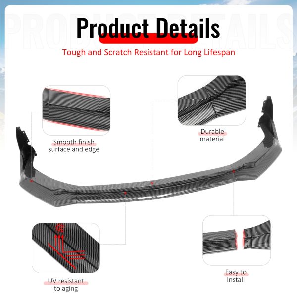 Document PRODUCT DISPLAY PRODUCT DESCRIPTION FEATURES & BENEFITS OTHER OPTIONS CONTACT US Key Features & Benefits 1. Custom & Direct Fit: This item is the whole set of 100% brand new custom fit front bumper lip spoiler, precisely engineered for an exact fit to your vehicle. Please confirm the compatibility before purchasing the front bumper body kit. 2. Premium & Reliable Material: The new designed front bumper lip chin spoiler is made of updated durable and sturdy materials to protect your car from scrapes caused by curbs or collision. The front lip splitter is constructed and tested by strict quality control standards with high impact resistance, heat resistance, corrosion resistance. 3. Effective Protection & Exquisite Appearance: Daily driving can provide anti-collision protective experience to your original air dam chin front bumper lip, protect from scrapes from driveways, speed bumps and curbs, alleviate the damage. In addition, it will dramatically improve the sporty and aggressive appearance for your car. 4. Aerodynamic Performance: The automotive vehicle front bumper spoiler improves aerodynamic characteristics by enhancing the transition between the high speed airflow under the vehicle and the free airflow in the surrounding, thus ensuring better performance and fuel economy. 5. Easy Installation & Available Painting: The car front lip spoiler splitter is designed for easy installation and comes ready to prep and paint.. Of course, professional paint job and installation is highly recommended. If you are not sure whether your car is suitable or how to install it, please contact us timely, we will help you solve the problem. Specifications Fitment Fits 2024-2026 Ford Mustang EcoBoost/GT with Performance Front Lip; 2024-2026 Dark Horse Models Without Handling Package; Not Fits GTD Models Color Carbon Fiber Print Style IKON 5PC Style Material ABS Plastic Package Includes 1x Set of Front Bumper Lip (5PC) Installation Instructions Not Included Note: Please test fit items prior to any painting services, any products that are painted void warranty. Descriptions The Front Bumper Lip Spoiler Splitter is not just a piece of decoration for your car. It serves quite a few additional functions other than adding to the car's aggressive and personalized appearance. It can protect your vehicle from minor damage and preserve its paint. The bumper lip splitter can provide better aerodynamic performance, reduce airflow, and then decrease air drag, and in crease fuel efficiency. It can also increase the stability of the vehicle while driving at an extremely high speed. In conclusion, the front bumper lip air dam chin is a helpful accessory to reduce the airflow and protect the car from damage, and also a stylish and fancy decoration. We provide a wide range of front bumper lip, spoiler and splitter kits that combine high quality and unique, stylish designs. Now, it's time to find one that fits your vehicle best. Welcome to IKON MOTORSPORTS Store. Custom Designed For Perfect Fit IKON MOTORSPORTS each front bumper lip spoiler is measured to direct fit your car model perfectly. The Detailed Functions Of The Bumper Lip CAR BUMPER PROTECTION LIP can help you solve these problems. Protect the Bumper From Damage A bumper lip covers the bottom edge of the bumper on the vehicle, protecting it from potential scrapes and nicks on a speed bump, parking block, curb, etc. It's also an excellent helper to preserve the paint of the car. Reduce Airflow Under the Vehicle When driving, there's air flowing under the vehicle. It will slow the car down and cause a loss in speed. The bumper lip can improve your car's aerodynamics and reduce airflow, and then decrease air drag, and increase fuel efficiency. To some extent, this can also help increase downforce, which improves handling. Enhance the Vehicle's Overall Look Some people install a front bumper lip just to make the car lower in appearance. The car with a lowered look is more stylish and attractive. So, it's also a great addition to improve the vehicle's aesthetics. Before VS After Installation Installing a front bumper lip spoiler splitter, it serves quite a few additional functions other than adding to the car's looks. It can protect your vehicle from minor damage and even aid its aerodynamics. Available Front Bumper Lip Universal Front Bumper Lip 1PCS Front Bumper Lip 2PCS Front Bumper Lip 3PCS Front Bumper Lip 4PCS Front Bumper Lip Add to Cart Add to Cart Add to Cart Add to Cart Add to Cart Our front bumper lips have the following options Click and turn to the related items Available Color Unpainted Matte Black Gloss Black Carbon Fiber Print OEM Painted Color Available Material CF – Carbon Fiber Matte Carbon Fiber PP – Polypropylene PU – Polyurethane ABS – Acrylonitrile Butadiene Styrene Available Style OE Style Mugen Style Type R Style AC-S/A Style Performance Style Domestic 48 States Free Shipping HI, AK, PR, GU, VI, APO, FPO 95 Canada 95 International 150 CA Sales Tax 10.75% Shipping Carrie UPS Ground, FedEx and USPS Priority, Pilot (Truck) for Large Package All Packages Will Be Shipped Out From Our CA Or GA Warehouse. We Will Adjust The Shipping Location On The Basis Of The Item Current Stock And Your Order Delivery Address. Please Feel Free To Place Your Order! Payment Methods Warranty 30 Days Money Back It is our goal to provide 100% satisfaction and peace of mind to our customers. If you are not satisfied with the products for any reason within 30 days of receiving the item. We will charge 25% restocking fees on returned items that have been installed, damaged, painted, cut and not authorized, etc. Please contact us to inquire how to waive the 25% restocking fees. (Items must be not opened in their original package. Any mark of installation, mounting, cutting, scratch or using will not be allowed.) Shipping and Handling are not refundable. 30 Days Return Seller Pay Shipping For Domestic Buyer. 30 Days Limited Warranty. Warranty is for exchang