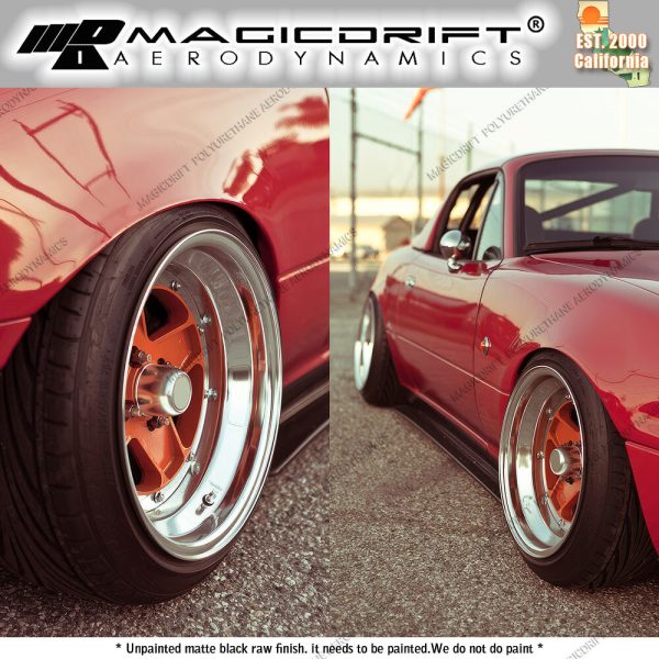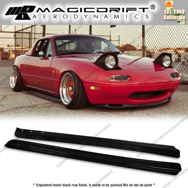 Please review listing description before purchase. For 90-97 Mazda NA Miata Roadster JDM FD Style Side Skirts Flat Under Extension Fitment Fits 1990-1997 Mazda Miata Brand MagicDrift Color Black Finish Unpainted raw surface finish. Prepping required before paint. Material Made of high grade Polyurethane for superior flexibility and durability. Package Contents 1x Pair of Side Skirts Placement on Vehicle Left, Right * WE WILL NOT BE RESPONSIBLE FOR PRODUCS THAT FELL OFF YOUR CAR DUE TO INSTALLATION ERRORS * – Drilling and professional installation is REQUIRED.- If there is no properly mounted double sided adhesive tape (sold separately in our store), it WILL FALL OFF.- If the kit is not sanded down prior to applying the REQUIRED double-sided tape, it WILL FALL OFF.- If screws or OEM hardware not properly tapped/bolted on, it WILL FALL OFF.- Self-tapping screws will be supplied with the product only if its applicable. * ALWAYS PRE-FIT ALL PIECES TO THE VEHICLE PRIOR TO PAINT AND FINAL INSTALLATION *- There will be NO RETURNS if the part is painted or modified in anyway. No exceptions.- ALL parts needs to be prep, sanded, primed before paint. The part will only look as good as the paint job.- Due to the characteristics of the polyurethane material, the part may flex or warp under heat or excess force, which can happen during transit. If the item is warped upon receipt, simply leave it flat outside under the sun and it will flex back to its original shape. Please feel free to message us or refer to the guideline below for more information. USA domestic continental 48 States (Ground) FREE !! PR, HI, AK, GU, VI, APO, FPO, PO BOX $80 International: to Canada $80 International: to Other Countries $140 Will-call / Local pick up at Baldwin Park, CA 91706: By appointment only We DO NOT ship during weekends nor major Holidays. Orders made after Friday after 12 noon PST will be shipped out the next business day (Monday). Domestic packages usually takes 2 to 5 business days depending on location.International packages can take up to 15 business days to deliver depending on how fast custom clears the package. Shipping rate does NOT include any duty tax or brokerage fee, please include the additional fee upon checkout.